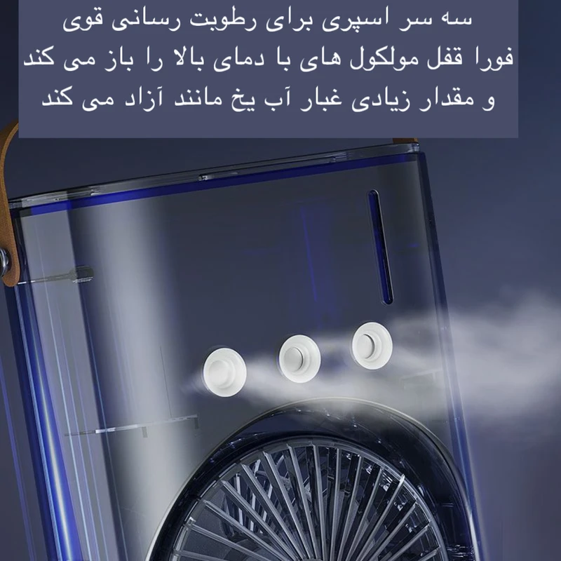 این پنکه علاوه بر تولید باد، دارای سیستم مهپاش (بخور سرد) است که: