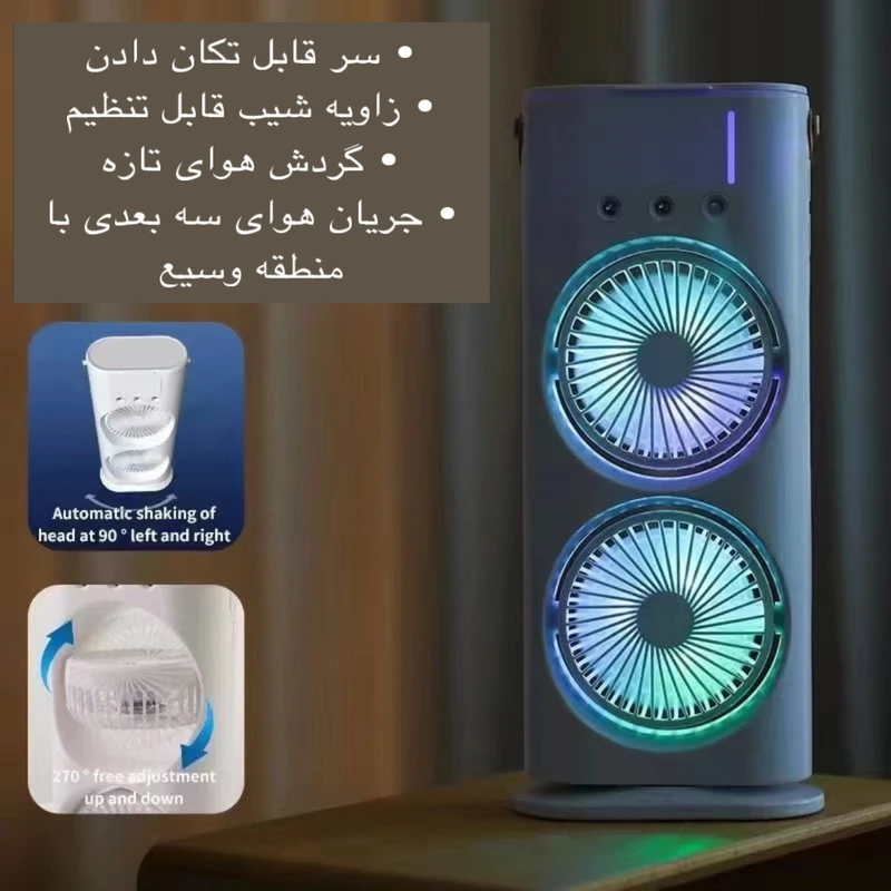 پنکه شارژی مهپاش دار | خنککننده قابل حمل با ریموت کنترل